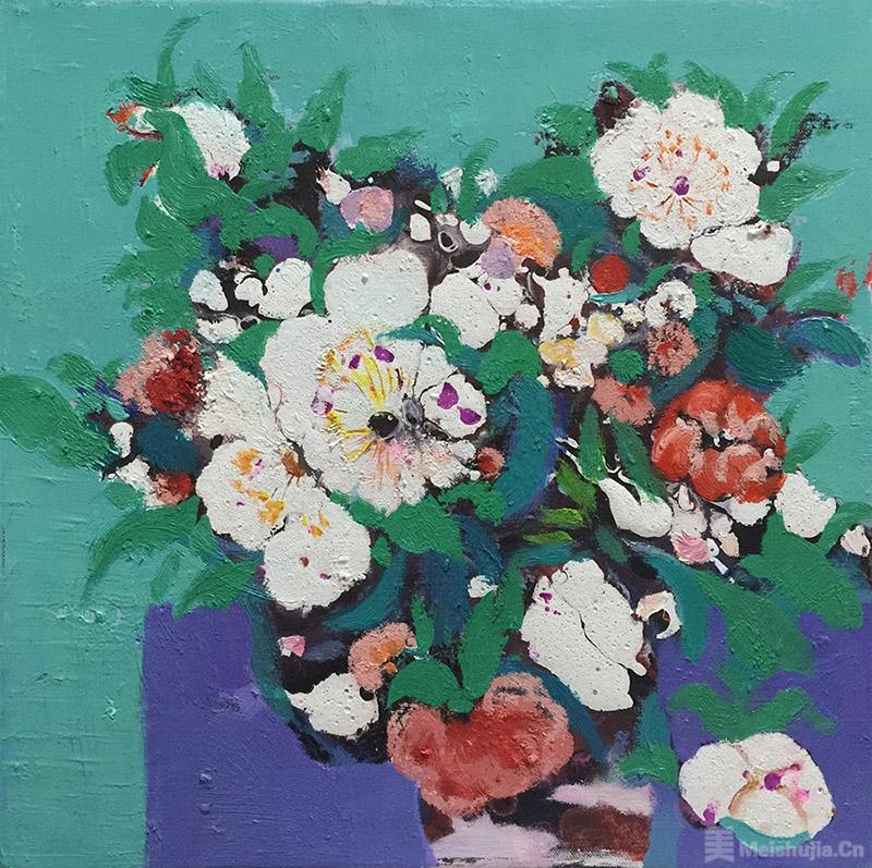 (8/10)何惠 《瓶花03》 40×40cm 布面油画 2018