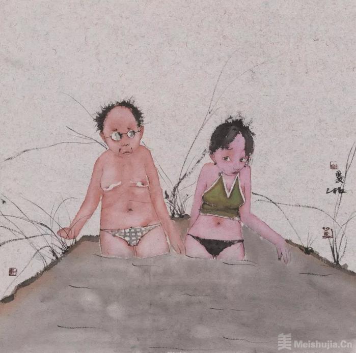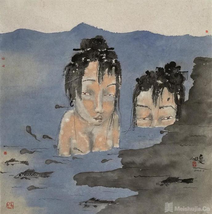 刘庆和以那些洋溢着青春体温的水中少女,展现了他在艺术中挽留生命的努力,隐约将我们带到一个幻觉的世界,无论这些儿童与女孩的眼神中有着何种秘密,我们与之对视都可以直指本心。值得注意的是刘庆和画中无处不在的水与网的意象,它们表达了囚禁与解脱、限制与自由的矛盾欲望,任何一个充满理想而又被现实缠身的人,都可以从中品味生命的无奈与艰辛。而刘庆和在他那些被人称之为“都市水墨”的作品中,用画中人物微妙的目光,表现出对天边云际有所眷恋的、捉摸不定而又迷惘的心绪,仅此一点,就可以确立刘庆和在中国当代艺术的独特位置。
