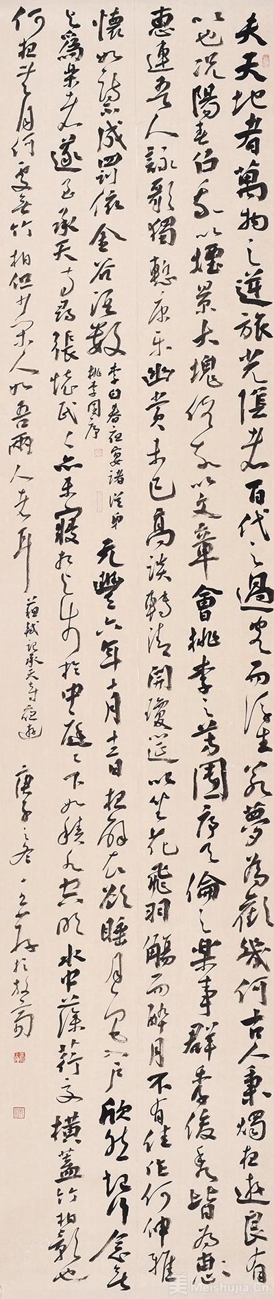 (2/5)王荐 李白春夜宴桃李园序·苏轼记承天寺夜游 行书 230cm×50cm