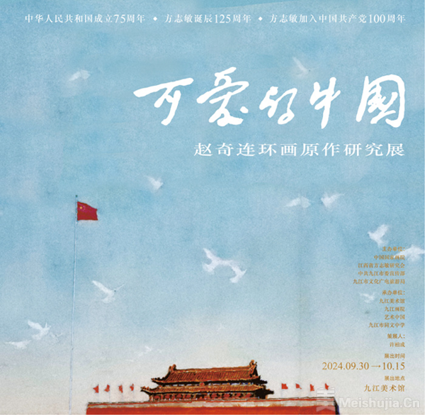 为庆祝新中国成立75周年,纪念方志敏诞辰125周年、方志敏加入中国共产党100周年,“可爱的中国——赵奇连环画原作研究展”将于2024年9月30日至10月15日在江西九江美术馆展出。本次展览由中国国家画院、江西省方志敏研究会、中共九江市委宣传部、九江市文化广电旅游局主办,九江美术馆、九江画院、艺术中国、九江市同文中学承办。