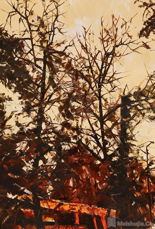 (2/6)十里银杏之一 许江 纸面油画 73cm×50cm 2024