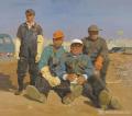 其作品最动人心魄的,是对平凡生命的平等凝视与尊严赋形。他的画笔既聚焦城市化进程里汗湿工装的建设者,也停驻边地高原上被风沙雕琢的面庞:风霜刻入的皱纹被视作生命的年轮,尘土覆盖的手掌被赋予劳作的荣光,就连休憩时遥望远方的沉默,都被定格为一种庄重的生命仪式。正是这份不带滤镜的真诚,让每一个平凡身影都在画布上获得了超越时间的重量。