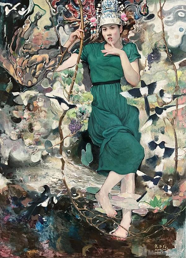 在早些时候,他是丝绸与光影的诗人。那些精微绝伦的“丝绸系列”,宛如一曲曲视觉的咏叹调。画中的女性与丝绸低语,光影在缎面上流淌——丝绸在他笔下,升华为中华物质文明的温润结晶;女性形象,成为“上善若水”哲学的诗意化身;而斑驳的光影,则是生命丰繁层次的隐喻。