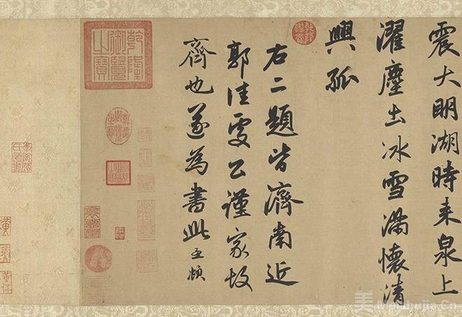 此卷是赵孟頫为了未曾去过家乡济南的挚友周密,挥毫书写旧作相赠的作品,书法润秀圆转,正是赵氏书风的特色,也是存世赵书中墨迹楷书罕见大字。