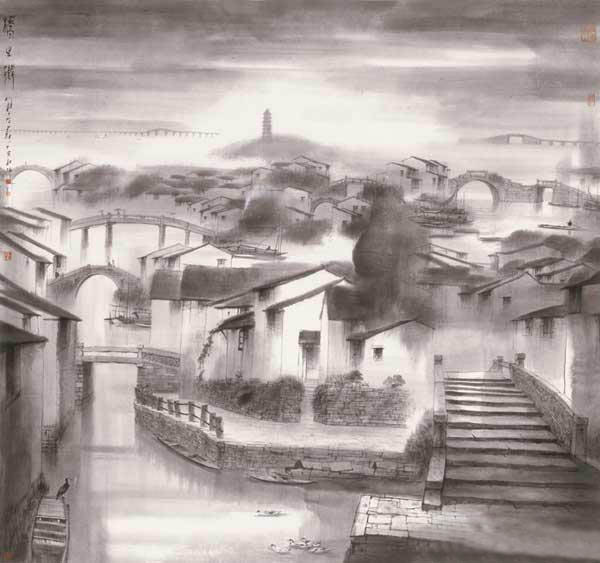 杨明义画百桥,几乎涵盖了江南所有类型的桥,一桥一世界,一画一天地,各具特色,每一座桥的特点与魅力都被他“挖掘”而出。今日的江南早已不是当年文人墨客笔下烟雨杏花的模样,现代化和工业文明不断地改变着她柔软的面貌,杨明义用画笔塑造记忆中的旧时江南之际,带着几分无奈与惆怅。他的画在呼唤着人们去寻找、触摸、认知、欣赏逐渐被现代文明掩盖的江南气息。一个成功的艺术家,应当在自己的土壤里埋下深厚的根基,江南便是杨明义绘画的土壤,他从中撷取创作的灵感,并不断探索和挖掘,将土壤里的精华积淀融入自己的作品。杨明义作“百桥图”不仅仅是将眼前所见用艺术的形式表现出来,更是意在保存江南的历史文化。这些桥,每一座都有自己的历史和故事,但也许明天就会因为种种缘故从我们的眼前消失,所以,“百桥图”承载的不仅仅是绘画艺术,它承载的,或许还有我们赖以生存的精神动力和苦苦追求但却日渐消弭的文化记忆。