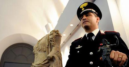 罗马报道——对许多游客而言,流连于纽约麦迪逊大街那些橱窗间真乃赏心乐事,而今年春天,米歇尔·斯佩兰扎(Michele Speranza)在纽约度假时突然被一家画廊的橱窗吸引,事情立马就变得严重了。斯佩兰扎是意大利保卫文化遗产宪兵队(Carabinieri Comando per la Tutela del Patrimonio Culturale)的官员,他觉得他认出了失窃文物数据库中的一尊大理石女性躯干像。他判断无误,这件失窃雕像于上周五与另一件失窃雕像一道被返还给意大利当局。