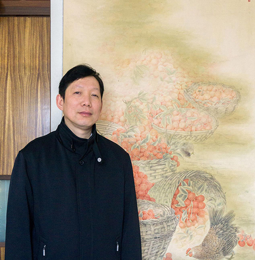 和国雄是通过网络两地交流的,国雄对绘画的虔诚和执着最能感染人,对艺术的追求和膜拜是自己不可及的。国雄的作品秉承了岭南风格的秀逸于清丽但又不流失典雅和新意。娇艳欲滴的荔枝搭配或山雀或雅器或蕉叶或家禽很具有生活化。画风既细腻精微又奔放洒脱,或清雅的撞水撞色或沉静的三矾就染或宏篇尺幅或把玩小品。件件精到篇篇认真。国雄爱画蝉,也是独特搭配。可见其心境。记得曾经看到过国雄乡里写生拍的几幅图片,常见的题材,独特的视角。非常接地气。艺术化的生活,生活中的艺术,我以为生活需要艺术化,也认为一切的艺术必须生活化。祝愿国雄的艺术永远赦人魂魄于人遐想。