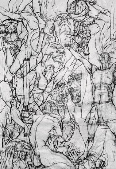 大畏喜欢钢琴曲,更喜欢交响乐,他期盼震撼人心。每当他收集到一幅幅发黄了的历史照片时,就会唤起创作激情,久久不能平静。当一堵墙被大畏用白纸蒙上并企图画上些什么的时候,那种冲动便会油然而生。没人要他画,是他自己想画。大畏的内心是充实的。