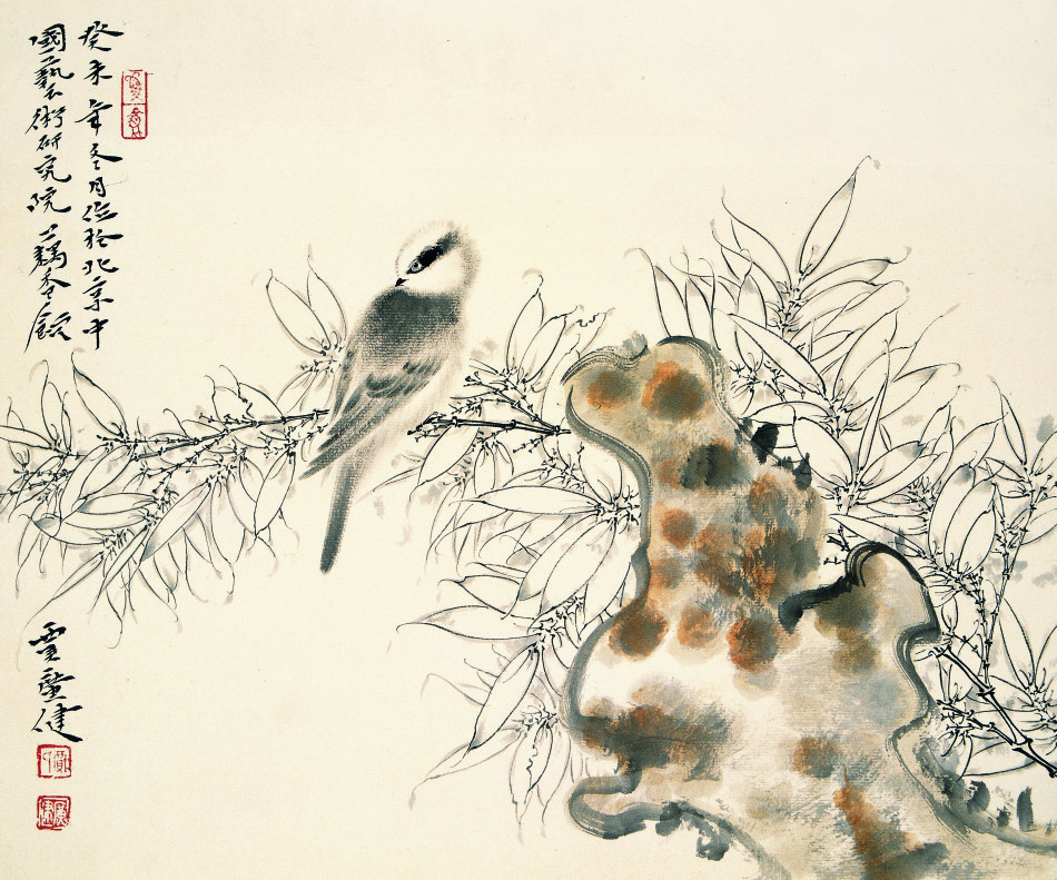 一代宗师李可染有这样一句箴言:以最大的勇气打进去,以最大的勇气打出来。贾广健的大景花鸟画情之真挚、法之精严、理之周致,体现出他对传统的用功和对传统的超越。贾广健从中国画的散点透视原理、传统山水画的立轴形式和中国画的手卷形式中领悟出自己喜爱的方形图式。他对物象的严肃描写和对细节的认真关注的绘画倾向,得益于他对宋人花鸟画的深入研究。他的画表面上看好似客观自然的一角,好似本真自然的状,也好似纯粹自然的描摹,而实际上却是精心营构出来的,画中的每一个细节无论在造型关系上还是空间层次上都很有推敲,尤其是画面边角的处理更见匠心,画面注重整体结构与整体气势的把握。他的每一幅大型作品都有多个“点”,而这些“点”不仅统一在全局之中,而且又有相对的完整性。对于他的画,我们可以远观其势,近看其“点”,犹如欣赏一幅大的立轴山水画或一幅长长的手卷。