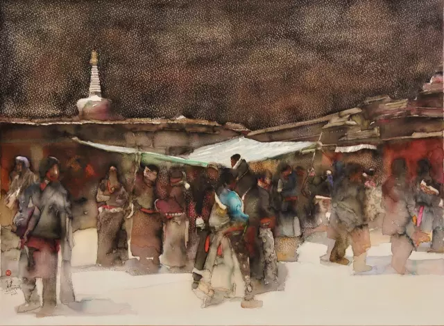 2014 水彩《甘南记事》三幅加拿大佛教文化艺术展 多伦多