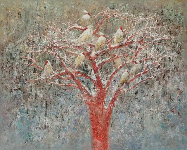 秦岭雪·朱鹮200×250cm/布面油画/2014年
