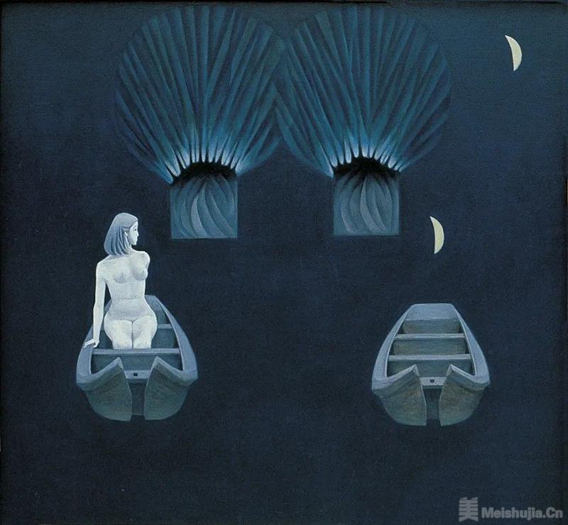 刘云先生的艺术创作,大致可以分为两个时期:一为油画前期,二为中国山水画时期。他早年的油画,一出手似乎就遇高人指路,这在上个世纪八十年代是极不同寻常的。这点我没有与刘云先生交流过,到底是什么机缘让他的艺术创作如此的“开窍”与“通灵”。我与刘云先生算是地道的乡亲加校友,都毕业于湖南师范大学美术学院(前身为美术系)。他当时是学油画的,没有往学院派通常的路数上走,他摒弃了学院派一味强调的造型与色彩,作品中看不到那种往画布上堆满了厚厚的颜料、油彩的学院派做法。我甚至怀疑当时他的油画老师和同学们是否能认可与欣赏他的作品?他的作品是如此的简洁、概括、单纯,他走出了一条抒情与理想主义的艺术道路。据说上世纪80年代中期,著名画家周思聪先生看到刘云先生在中国美术馆展出的油画作品,很惊诧其静穆的艺术意韵,说这恰是她多年追索的境界。“静”之美,为内美、深美,是澄明之境。这是刘云全部特质之内核,也是他谦和、内敛禀赋的外化。艺术之静美,不仅仅是因为画面视觉的单纯与平静,更应该是画面所传达出来的静穆、安然、恬静、舒张的境界与气息,让人从作品中洞见、品味其幽深的秘境、自然的天机、婉约的情感与深沉的情思。
