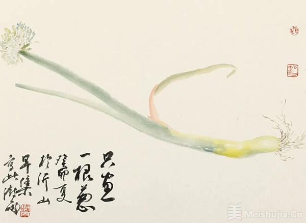 兰花风雅,有君子风。大葱则是必备食材,带着烟火气。我的画中有兰花,也有大葱。我追求精神的脱俗,但也实实在在过着每一天的平凡生活。