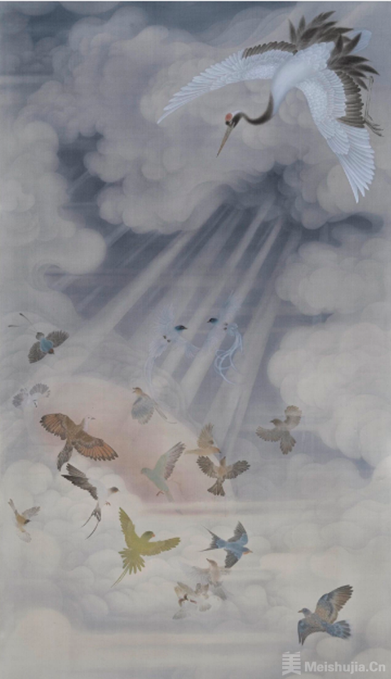 《遥翮尘光》绢本设色 230x130cm 2025年