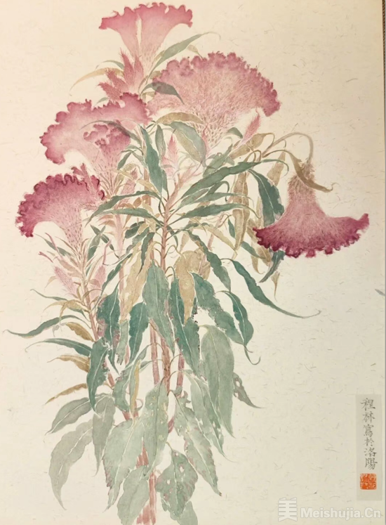 《写生鸡冠花》纸本设色 43x 34cm 2022年