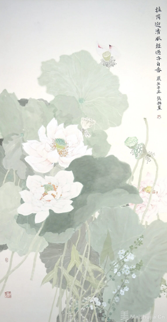 《植荷》纸本设色 180x 97cm 2021年