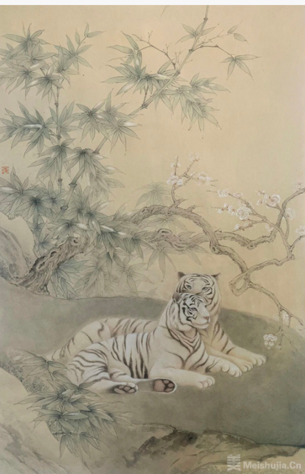 《双虎图》纸本设色 65X46cm 2023年