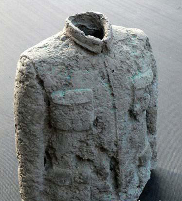 隋建国作品《衣钵》。中山装正面的残旧是作者主观意图的表达。“中山装”系列是他最有代表性,也卖得最好的作品。
