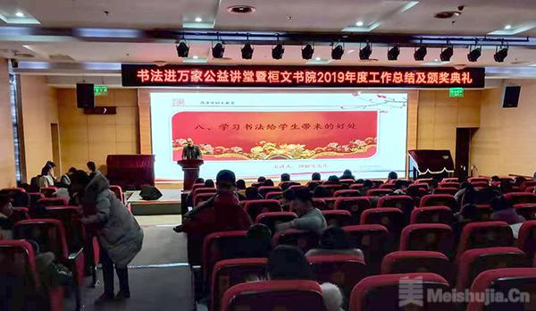 1月12日下午,书法进万家公益讲堂暨桓文书院2019年度工作总结及颁奖典礼在菏泽市图书馆举行。讲堂邀请了多名菏泽市著名书法家参与授讲。公益讲座宗旨是推动中国优秀传统文化传承发展,坚定文化自信,促进书法事业发展,提高民众对书法的认知及审美能力。