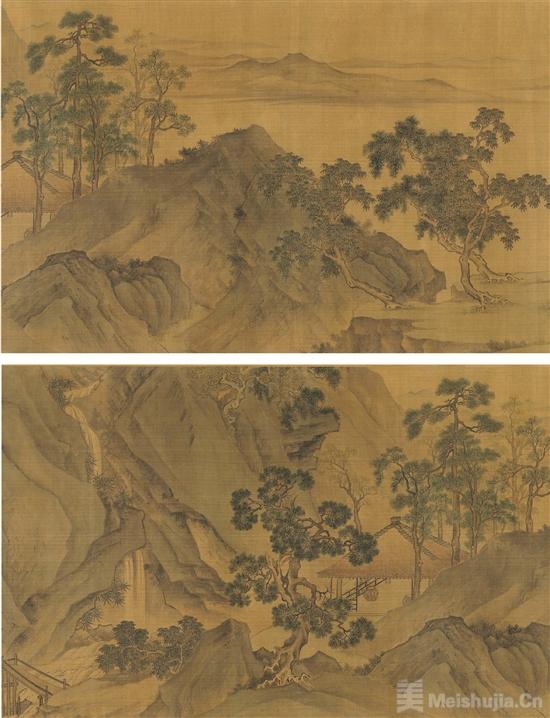 《江乡清夏图》卷,绢本,设色,本幅31.6×503.5cm,现藏于台北故宫博物院。卷尾有一款识,已残破,曰“嘉定元年春日制。刘松年”。