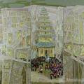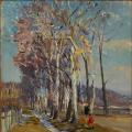 风景(油画) 69×49厘米 1957年 马克西莫夫 油画作为传统西洋艺术的代表,在明代即随传教士入华。19世纪末20世纪初,中国青年满怀着艺术救国的梦想毅然走出国门,学习洋画。五四运动后的二三十年间,虽然各地成立了多所艺术专科学校,但油画教学在那个动荡年代里却难以形成完整的体系。直到新中国成立后的1955年,以苏联专家马克西莫夫在中央美术学院主持开办为期两年多的油画训练班为标志,自觉的油画教学体系建设工