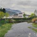 《烟雨宏村》60x80cm 谭智群是当代油画界一位将艺术修养与鲜活创造力融于一体的艺术家。他的艺术世界根植于对自然与土地的虔诚热爱,并经由丰盈而温暖的色调,流淌为充满生命力的风景与风情画卷。其笔下的山川、田野、村舍,不仅是视觉的风景,更是情感的归处,将对故土与生活的深沉挚爱,凝练于每一笔触与色块之中。 作为山东艺术学院油画专业的教授与学术中坚,谭智群具备对西方油画体系从古典到现代的深