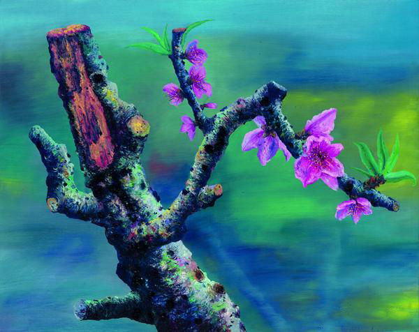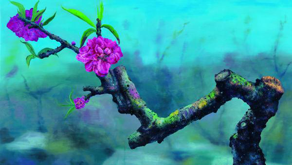 我想,题材的选择对于曹卫国既是偶然的,也应该是必然的。说是偶然,他应该是在某时某刻迷恋上了某个对象(某种题材);说是必然,我们可以从他所表现的题材看出其“偏好”。什么偏好呢?他对人物、山水或社会风情暂时没有兴趣,此时他对“花鸟”(花和鸟)显露出浓厚兴趣。这从某种意义上也显现了曹卫国的“艺术基因”,他似乎一定程度上间接地、有所选择地继承了“中国传统大写意花鸟画”的某些东西,尽管他用的是西画的工具材料及作画方法。其作品乍看之下是“写实”的,其实是“写意”的。