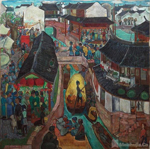 这是一座古老的小镇,有着浓厚的江南水乡特色。人们,尤其是妇女的衣着与环境十分和谐,一切,都透着古老文化的影子。镇里小河的岸上常有石块伸向水面,那是为来往支系船绳用的,不单有孔,还有浮雕的纹样。小舟往来,我坐在岸边,身边放一小袋炒面,一瓶墨汁勾画着,感到十分亲切和喜悦。