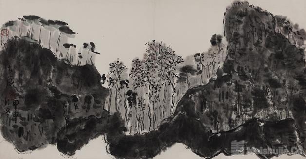 (5/8)山中树群 作者:邵大箴 创作年代:2015年 规格:55×90cm