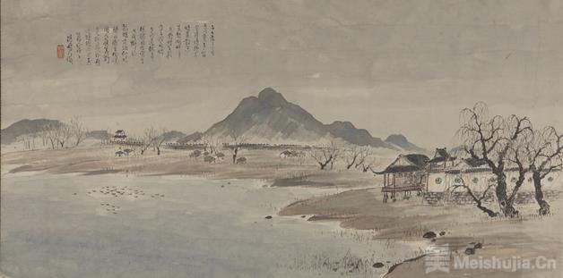 (11/11)莫愁湖冬暮 作者:陈树人 创作年代:1928年 规格:42.5×84.7cm
