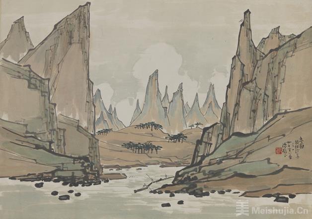 (2/11)急滩 作者:陈树人 创作年代:1946年 规格:44.5×62.7cm