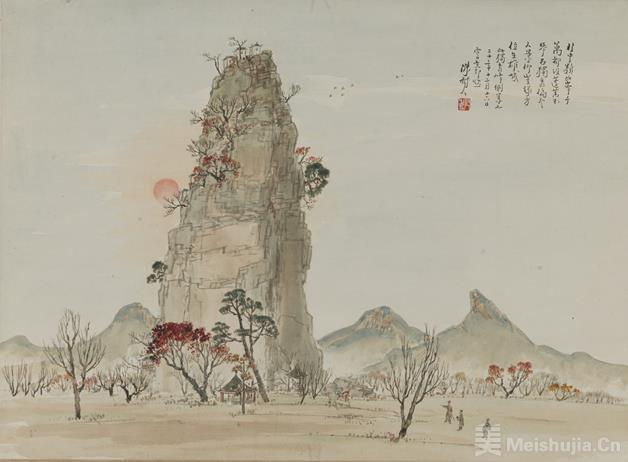 (3/11)桂林独秀峰 作者:陈树人 创作年代:1931年 规格:49.8×67.4cm