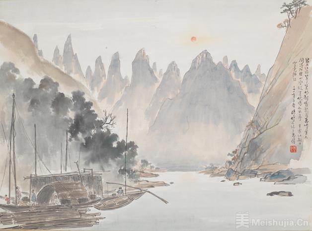 (6/11)平乐江朝日 作者:陈树人 创作年代:1932年 规格:49.5×67.8cm