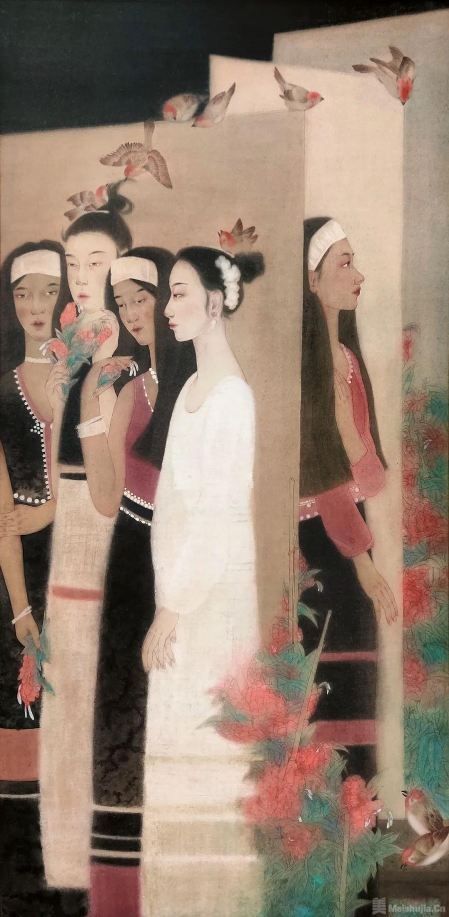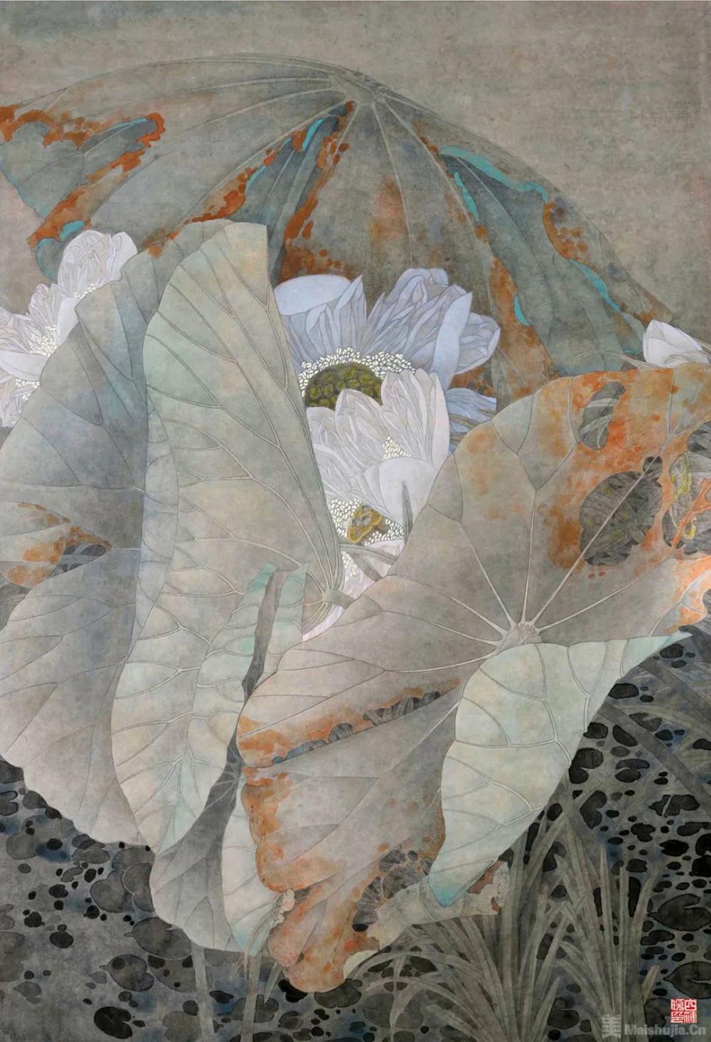 应传统时令的气氛,多件作品描绘了初夏时节的风景与事物,如白海媛的《晓露》、姜南的《夏日物语(之二)——绿意》、彭楹文的《一蒂千花白玉团》等,展现了浓郁的生活气息,体现出女性特有的视角、感受。