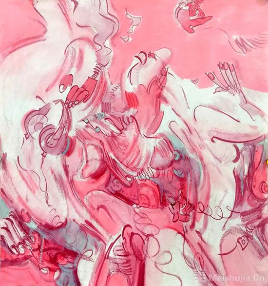 “虚拟人生指南”和“躺平一族”两个系列是近两年的作品,与前期不同的是画中身体的姿态,由僵直与漂浮转向对曲卷、蠕动的描绘,其中透着茫然与苍凉之意,这也许是互联网环境下“躺平”一词热议背景中,张江舟对当代人尤其是当代年轻人生存境况、情感体验的个性化表达。
