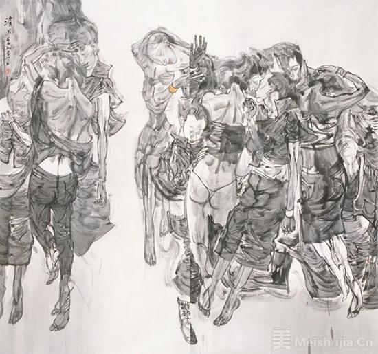 当身体已成为表达的主体,当身体语言已成为张江舟独特的语言方式时,我们不仅看到了其独立的个性化语言风格的建立,其对人的身体凝视和对身体所承载的精神与情感信息的诠释,让我们看到了人物画创作走向自身的更加纯粹的、更加本体化的学术诉求。