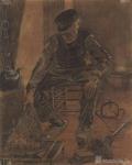 (1/6)《炉边的老人》(Old Man at the Fireside),Vincent van Gogh,1881年,纸本水彩、粉笔画