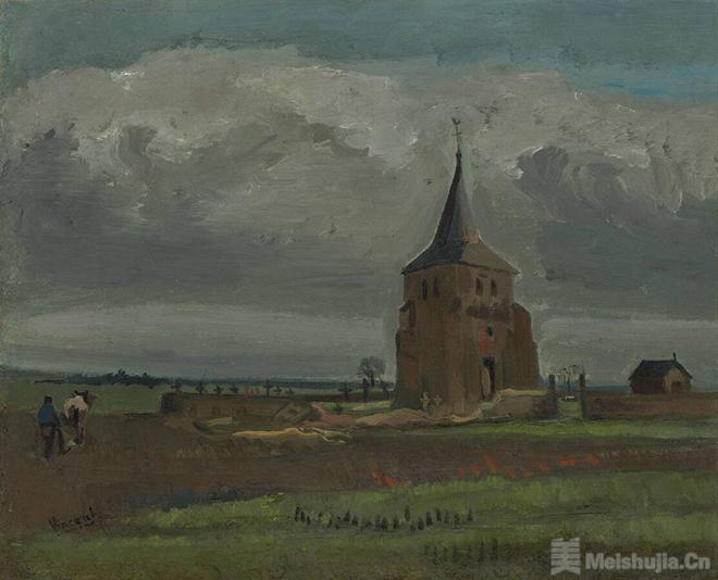 (2/6)《努南的旧塔楼》(The Old Tower at Nuenen),Vincent van Gogh,1884年,布面油画