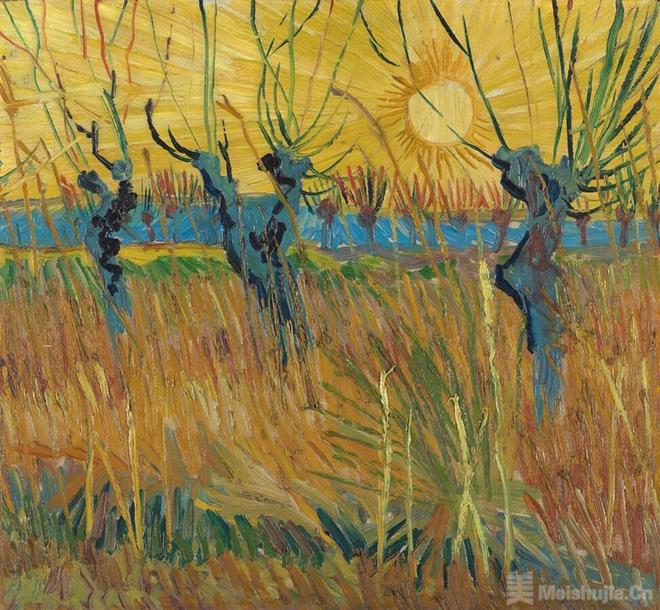 (5/6)《日落时柳树》(Pollard Willows at Sunset),Vincent van Gogh,1888年,布面油画