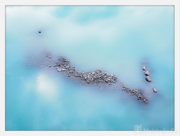 相比之下,廖益嘉采取了截然不同的方式,他的新系列《士林拦河堰》和《高点》未使用地图作为素材,而是选择了一种原始的制图方式:摄影。他捕捉了一部分的「土地」,不寻求空中拍摄或预先研究的平面,而是关注于人类如何感性和诗意地绘制世界。透过石头、水面上的天然油渍和山峰作为指示和路标交织在一起,他创造了自己独特的虚构地图。这些微观的自然元素成为宏观的山脉、河流和边界的象徵。他像玩棋子般移动和重塑这些元素,通过直接摄影和特殊取景角度形成理想化的地图微型表徵。特别是在台湾拍摄的《士林拦河堰》系列作品,具有个人和文化上的重要意义,使他的制图过程在执行上显得写实,而在概念上则显得细腻并具象徵性。