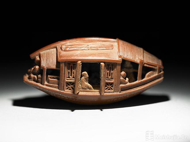 (2/4)雕橄榄核舟,陈祖章,清乾隆年间,1737年,台北故宫博物院藏