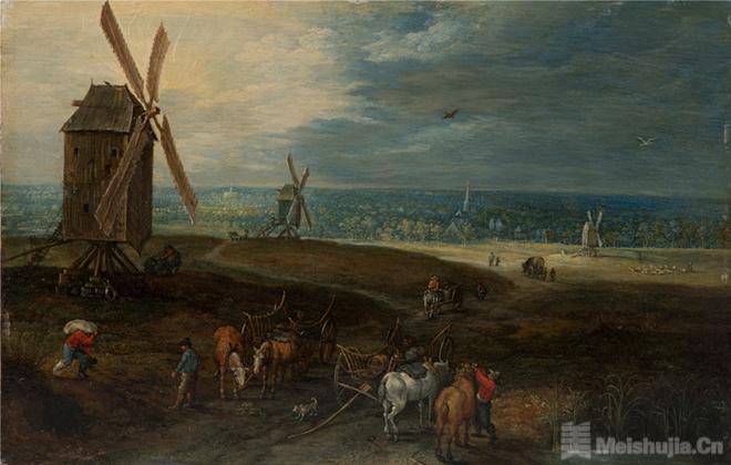 (1/5)《风车前的旅人》,Jan Brueghel the Younger,铜版油画