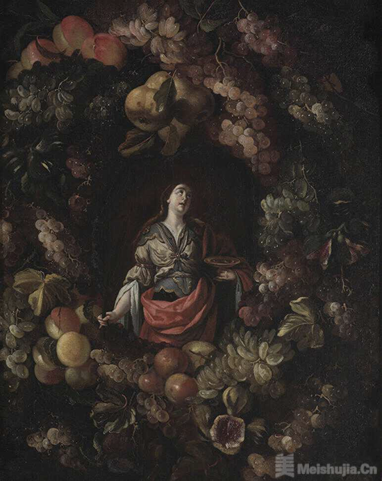 (4/5)《果实环串中的圣露西》(传)Antonio Pereda,布面油画