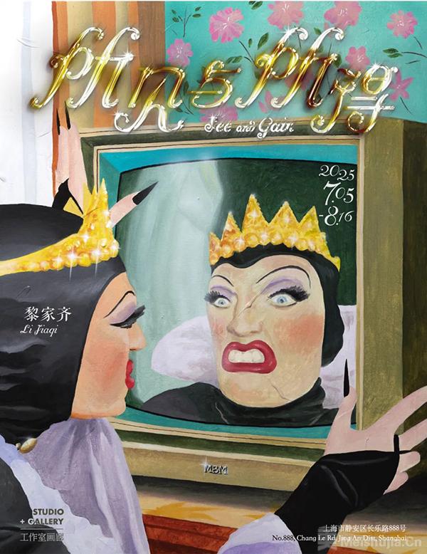凭借对视觉性与图像性的探索,黎家齐逐渐成为非常具有活力和个人特点的年轻艺术家之一。2024年,他通过工作室画廊的展览及西岸艺博会崭露头角:彼时他以迪士尼动画形象为灵感,融合现实人物与现成品材料,创作了公主与王子主题的系列作品。最近的一年里,他开始汲取“视错觉绘画”(Trompe-l’œil)的精神,探索现实(Reality)、虚拟(Virtuality)、拟像(Simulacrum)、镜像(Reflection)、表象(Appearance)等概念的关联,把丰富的角色形象融入到对这些概念的探索与研究中,并以其独有的幽默与智慧巧妙地呈现在画面中,形成了让人意料不到的视觉组合。其绘画的构图元素融合千禧时代网络生活的特质,既有平面设计与二维漫画的布局与用色,亦呼应“后互联网艺术”运动的风格,同时可见胡里奥·拉拉兹(Julio Larraz)与米歇尔·马歇温斯(Michel Majerus)等艺术家的影响。