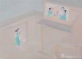 夏日站台上,停靠着一辆从布拉格开往柏林的双层火车,红色的车门在灰蓝色调中显得尤为鲜艳。我们目光聚集此处,才发现,一个穿白色上衣的女孩,在走进车厢的那一刻仍在回望,是依依不舍,还是想着再看看谁的身影?画外有她送别的恋人。但你仔细琢磨,画家的视角仿佛和恋人站在同一个位置———这是武艺这批画作中常见的叙事结构,他总是以一个“主人公”的角度来交代旁观者看到的故事。