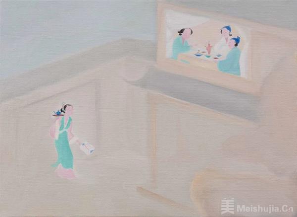 于是,这些“福禄长寿”与“情色”双关的画作,成为仲夏时节武艺画中的雅物。但它们又和古代不同,它们有着更为现代的形式,波普的构成,平面化的抽象语言。它在情感上也多了些日常的经验,西方的故事,一瞬的隐喻。武艺让“如意”与“吉祥”不再喧闹与热烈,而是“清欢”与“平和”,有种淡淡的疏离与安然。
