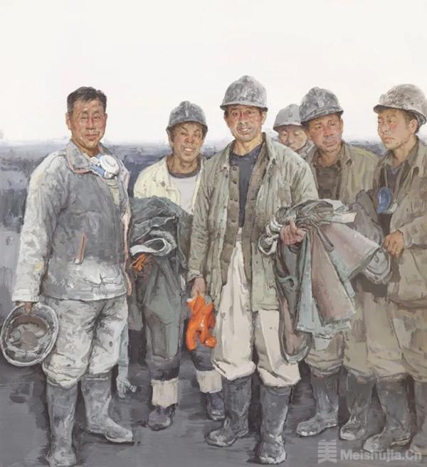 其作品最动人心魄的,是对平凡生命的平等凝视与尊严赋形。他的画笔既聚焦城市化进程里汗湿工装的建设者,也停驻边地高原上被风沙雕琢的面庞:风霜刻入的皱纹被视作生命的年轮,尘土覆盖的手掌被赋予劳作的荣光,就连休憩时遥望远方的沉默,都被定格为一种庄重的生命仪式。正是这份不带滤镜的真诚,让每一个平凡身影都在画布上获得了超越时间的重量。