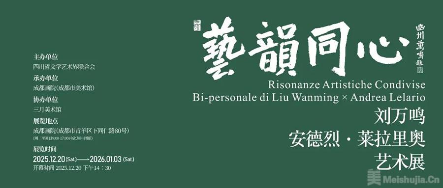 由四川省文学艺术界联合会主办、成都画院(成都市美术馆)承办、三月美术馆协办的“艺韵同心——刘万鸣、安德烈·莱拉里奥艺术展”,将于2025年12月20日至2026年1月3日在成都画院举办。本次展览汇聚中意两位艺术家的精品力作,以艺术为桥梁,展现跨越文化的精神共鸣与审美对话,诚邀广大观众共赴这场东西方交融的艺术盛宴。