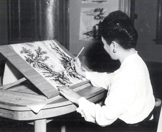 1951年7月,宋美龄在官邸专心画画。联合报图