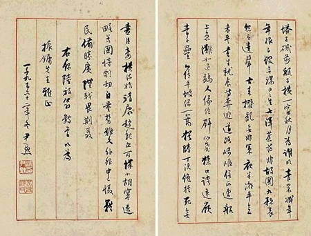 沈尹默目力不佳,晚年益甚,近视至2200度,对面不能见人,居然尚能作朱丝精楷,纯熟秀美,益发为世所重。